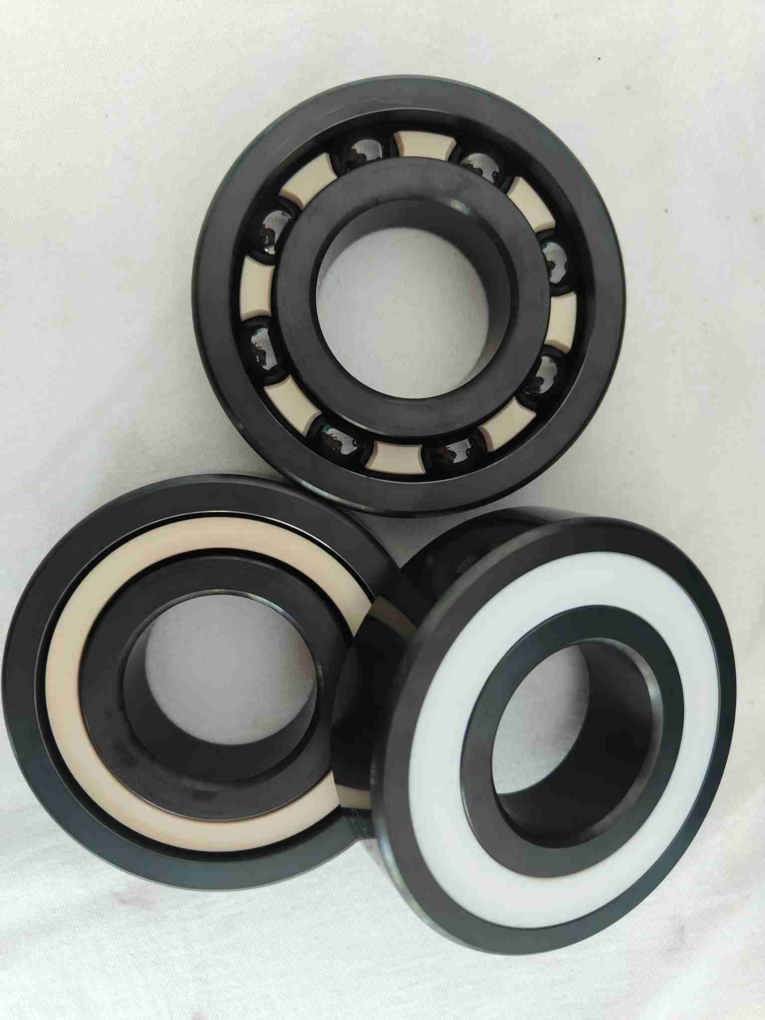 - PEEK Cage: This high-performance polymer is lightweight, strong, and self-lubricating. It ensures smooth guidance of the ceramic balls at high speeds, outperforming metal retainers by reducing friction, inertia, and the risk of galling, especially in poor lubrication conditions.